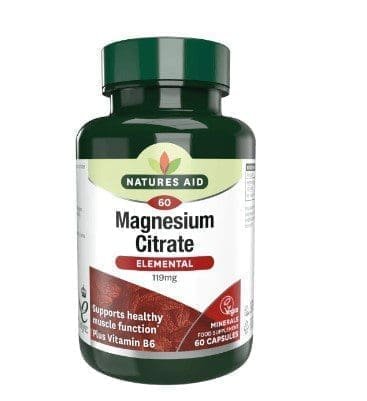 Natures Aid Magnesium Citrate Tablets provide a bioavailable form of magnesium (as magnesium citrate), often combined with vitamin B6, designed to support muscle, nerve, and metabolic functions; plus overall mineral balance — useful for people who may not get enough magnesium from diet alone.